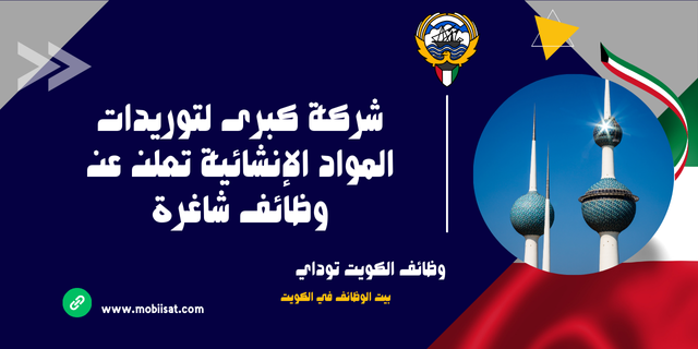 هل تبحث عن فرصة عمل في مجال المواد الإنشائية؟ شركة كبرى لتوريدات المواد الإنشائية في الكويت تعلن عن توفر 4 وظائف شاغرة في الأقسام التالية: مبيعات وتسويق، مخازن، و سائقين للتعيين الفوري.